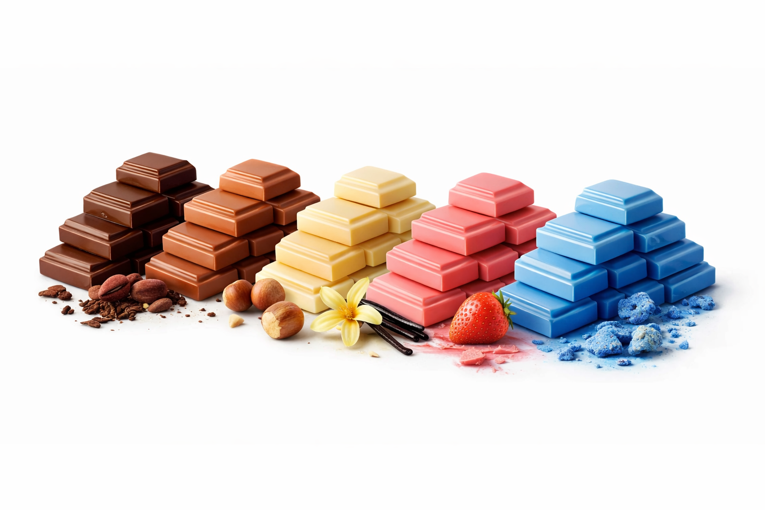 | Flavor | Dark, Milk, White, Blue Cookies, Strawberry |